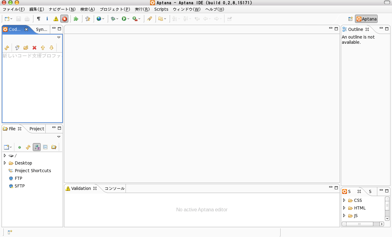 Aptana on Linux 14 6月 2007•1 分の読了時間•タグ: Aptana 数日前は動作しなかった Aptana が動作した。 何が原因かはわからない。 今日、改めてダウンロードしてきて実行したので、この数日の間にバイナリに更新がかかったのか、修正がかかったのかわからんけど、結果オーライ 😄 これで Ruby をいじりやすくなる(笑) Linux 上の Aptana はこんな感じ。