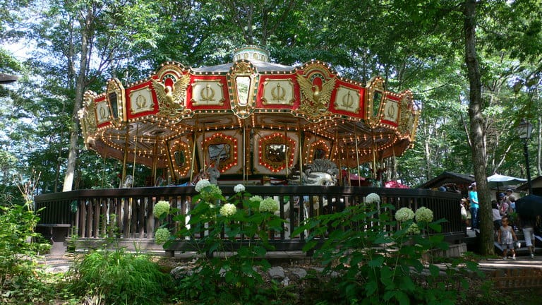 この場所、萌木の村という施設(?)内のひとつで、広場があったり、"森のメリーゴーランド"と銘打った屋外メリーゴーランドがあったりする場所。