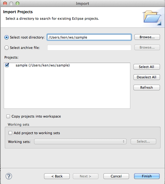 今回作ったプロジェクトは Eclipse のプラグインを導入してない。導入した所で.project ファイル作成時に設定が上書きされ、消えてしまう。 ■ eed3si9n/sbt-appengine - GitHub https://github.com/eed3si9n/sbt-appengine sbt-appengine プラグインもあるんだけど、うまく動かなかったので放置してる。