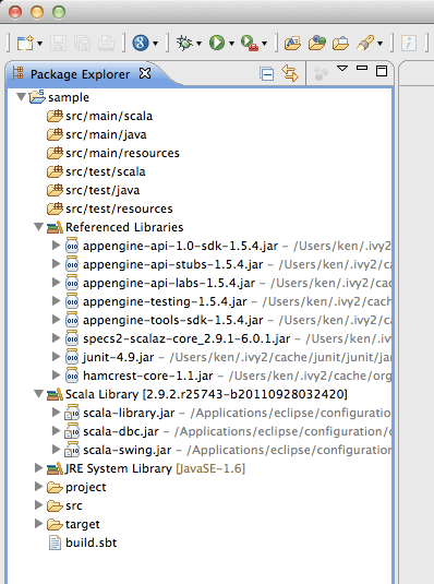 ■ teaplanet/sbt-appengine-eclipse - GitHub https://github.com/teaplanet/sbt-appengine-eclipse 以下の手順で作るふたつの build.sbt は GitHub に置いといた。