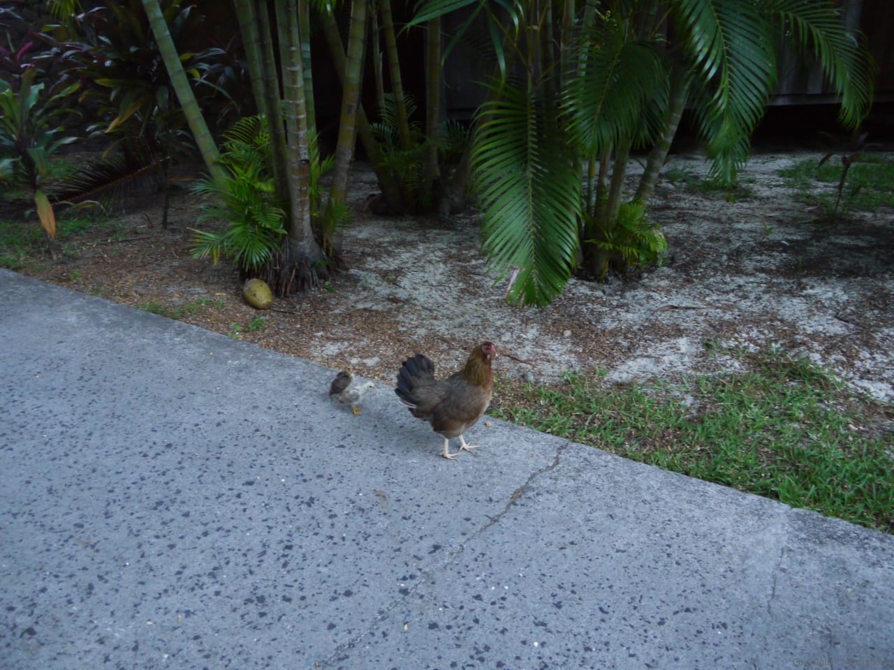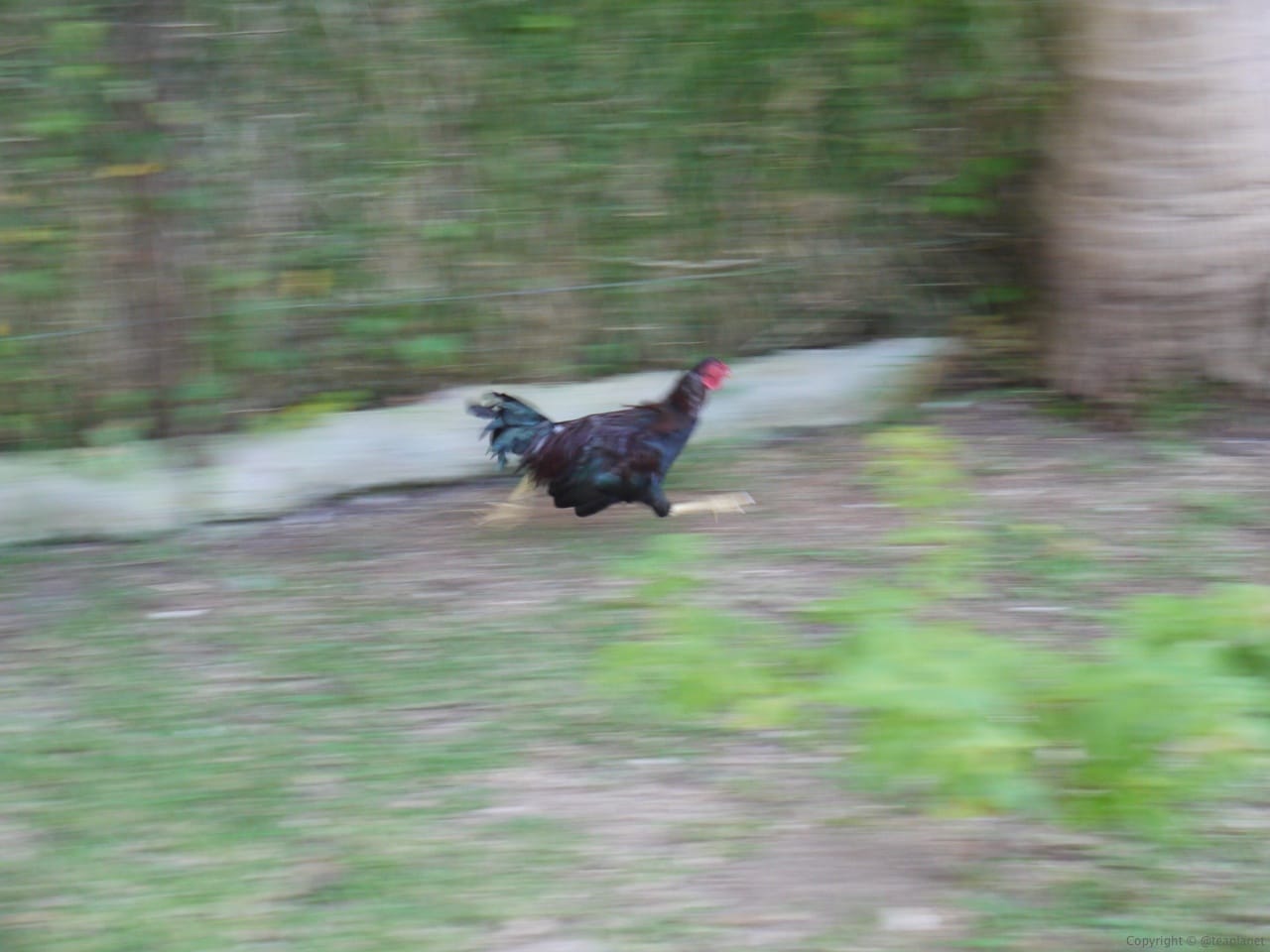 朝日の撮影も終了したので、朝食へ…と思って歩いていると鶏登場。そこら辺にいるんだけど。 この日だったか、正確には覚えてないが、鶏を撮りながら坂道を下っていたら朝食を食べ終えた観光客の人が声をかけてきた。 英語圏の初老という感じの人で「おまえたちは朝飯にシリアル食べるのか?」って感じの会話。 シリアル食べるって話をしてたら「それをこっそり持ち帰ってくるんだ。そして、それを鶏にやると食べるぞ(笑)」って。 どこの国の人も大差ないようだ。