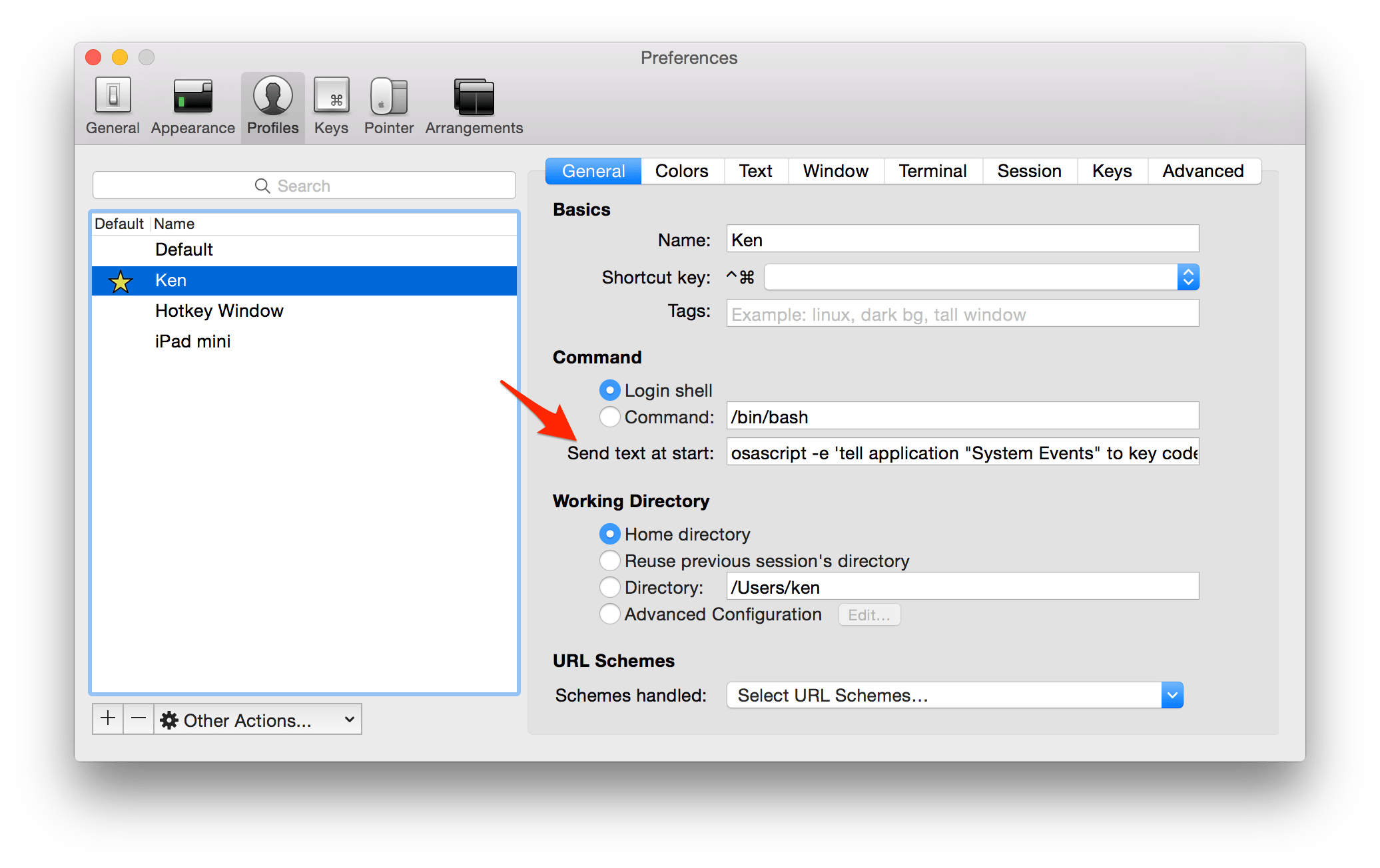 iTerm には起動時にスクリプトを実行する機能がある。